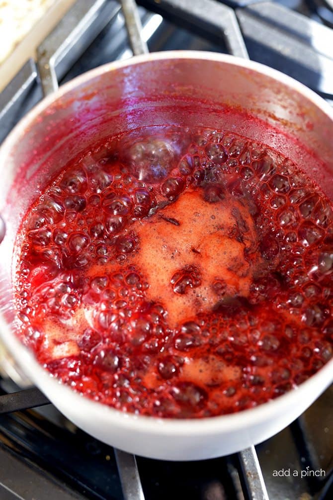 If you have difficulty finding fresh or frozen cranberries, you can also make cranberry sauce using dried cranberries. You’ll substitute 1 1/2 cups dried cranberries for the cranberries and 1 cup cranberry juice for the water called for in the recipe. Add all ingredients to the saucepan and boil for 8 to 10 minutes. If the cranberry sauce needs to be thickened more, you can make a slurry of 2 tablespoons cornstarch and 1/4 cup water and slowly stir it into the sauce while it is on the stove. Remember that it will continue to thicken as it cools.