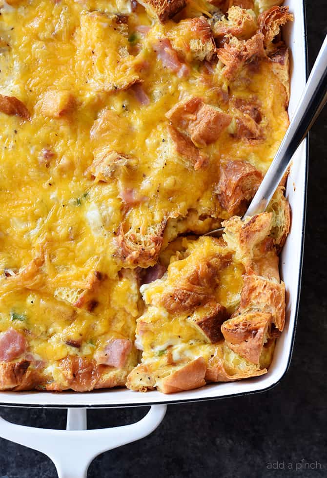 Amazing flavor. The flavors of ham, cheese, and buttery croissants mingle with green onions and parmesan cheese for the ultimate breakfast casserole!
