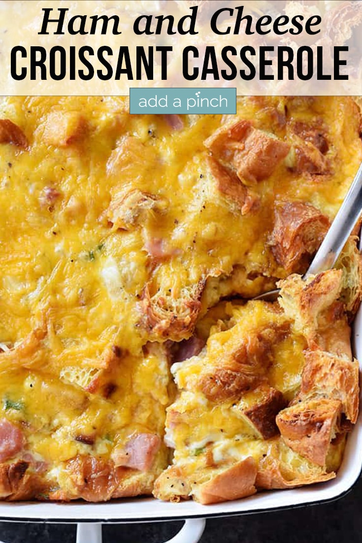 This Ham and Cheese Croissant Casserole takes the deliciousness of a ham and cheese croissant to create this easy croissant breakfast casserole! Perfect for brunch, easy suppers, and holidays too!