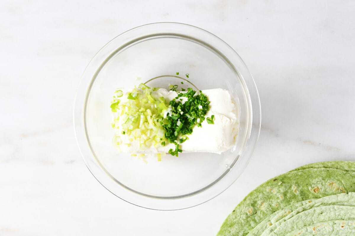 Add the softened cream cheese, chives, and green onions to a small bowl. Stir to combine.