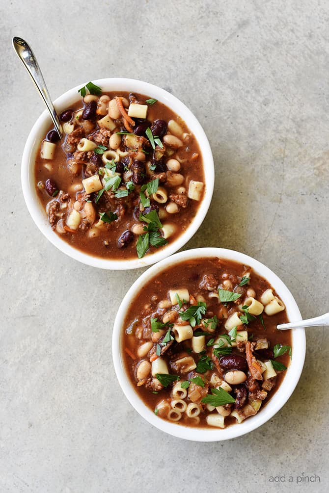 Vegan – For a vegan version of this soup, simply omit the ground beef, use vegetable stock, and omit the Parmesan as garnish.